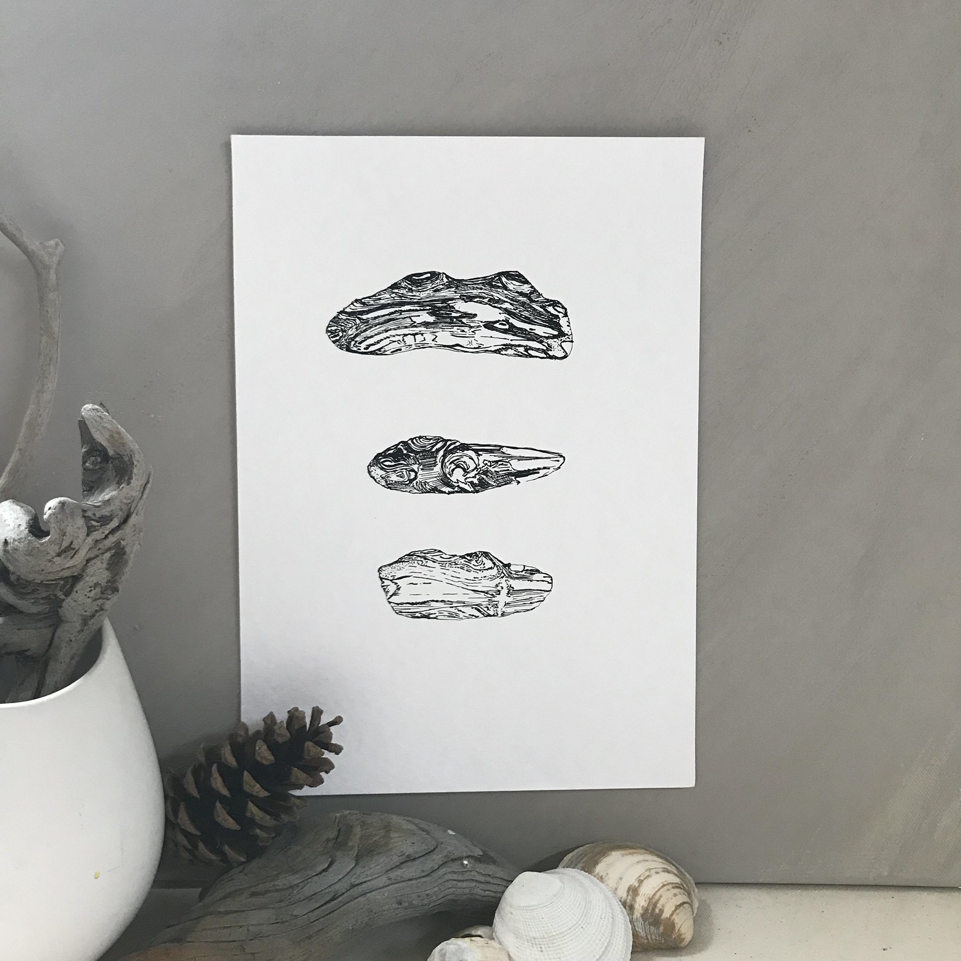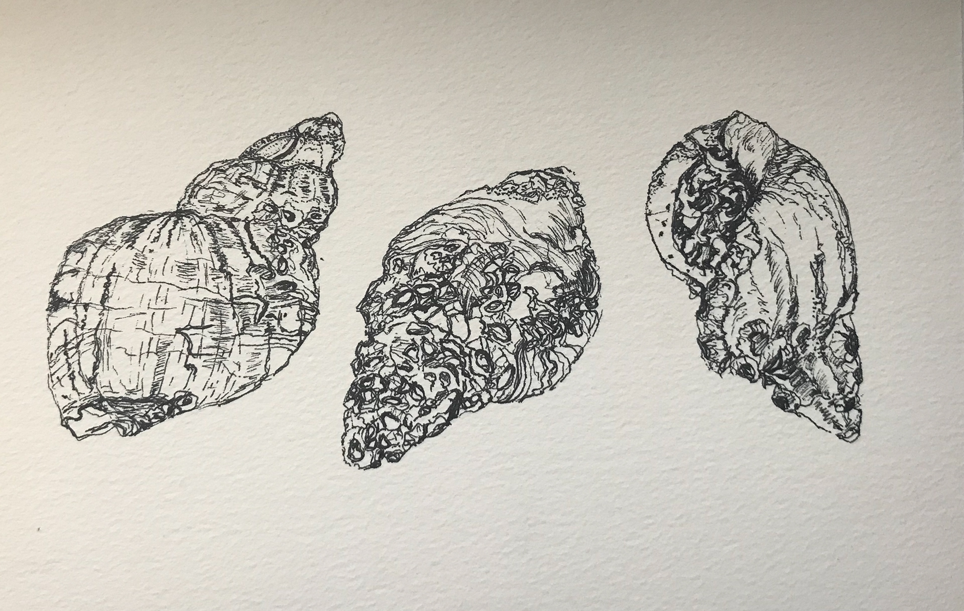 Pen and Ink portraits of beachcomber treasures.